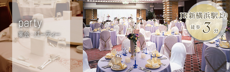 新横浜フジビューホテルは新幹線新横浜駅より徒歩3分。 招く方、招かれる方どちらにとってもこの上ない立地条件です。 ご宴会・同窓会・ご商談など様々なスタイルに対応できる8名様から最大立食にて220名様まで各種ご宴会場をご用意しております。ゆきとどいたサービスと、ご満足いただける料理、皆さまのご利用を心よりお待ちしております。